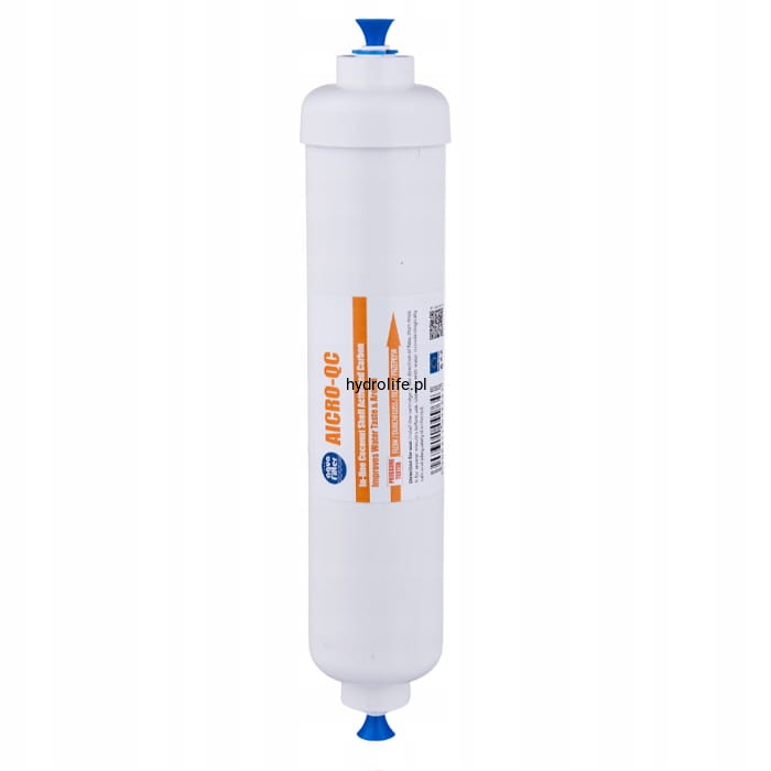 AQUAFILTER – Liniowy wkład z węglem aktywnym z łupin orzechów kokosowych. Pasuje do lodówek SIDE BY SIDE wyposażonych w zewnętrzny wkład montowany na wężyku 1/4" (około 6 mm). Filtr pasuje do lodówek jak: