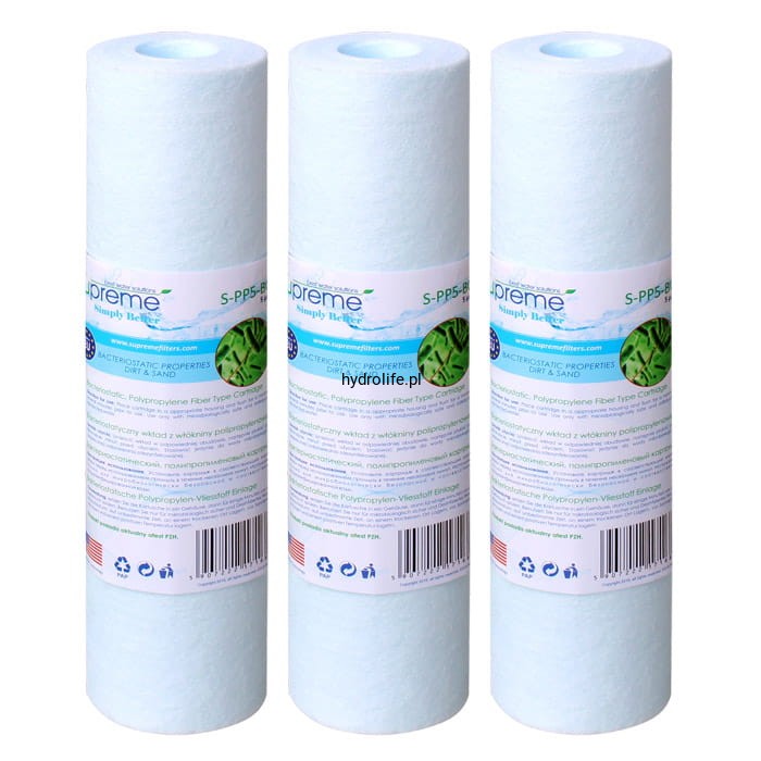 Zawiera najlepsze na rynku bakteriostatyczne wkłady mechaniczne marki SUPREME, które usuwają z wody zanieczyszczenia mechaniczne oraz doskonałej jakości wkłady węglowe S-BL (prawdopodobnie najlepsze wkłady węglowe dostępne na rynku).