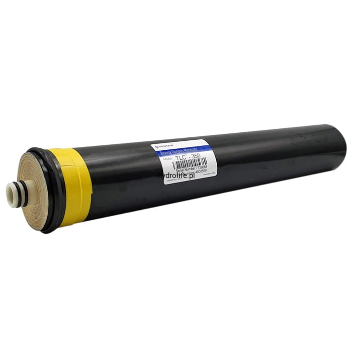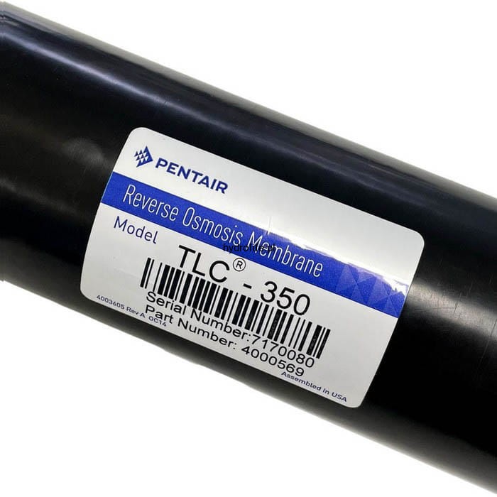 Oryginalna membrana RO marki PENTAIR/USA o symbolu TLC-350. Wysokiej jakości membrana osmotyczna, przeznaczona do system Odwóconej Osmozy MERLIN. Jest w stanie wyprodukować do 350 galonów lub ok. 1300 litrów czystej wody na dobę. Zapewnia bardzo dokładną filtrację na poziomie 96-97% podczas, której usuwane są zanieczyszczenia nie mniejsze niż 0,0001 mikrona. Na drodze filtracji osmotycznej usunięte zostają zanieczyszczenia takie jak: