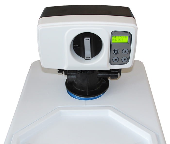 - Podświetlany panel LCD wyświetlający niezbędne informacje takie jak: aktualna datę, godzinę, a także volumen wody miękkiej do pobrania, do czasu kolejnego trybu regeneracji,.