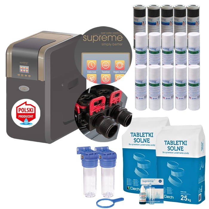 - dodatkowe 10 szt. wkładów piankowych marki Supreme (zapas na kilka lat). Wkłady skutecznie usuwają, wszelkie zanieczyszczenia mechaniczne, części stałe odrywające się często ze starych instalacji, zawiesiny.