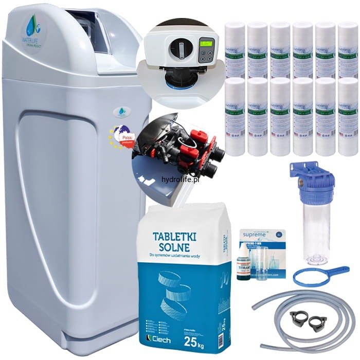 WATERMARKET 20B - Zmiękczacz wody - 20L, sól, test, wkłady, BNT1650F (nowy, poprawiony, bezawaryjny, zawór sterujący, BY-PASS, MIXING, GARTISY