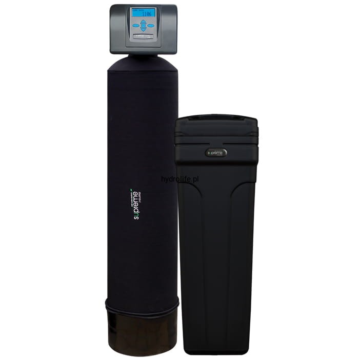 Doskonałej jakości zmiękczacz z 100 litrami złoża monosferycznego LEWATIT w zbiorniku Black SUPREME INDUSTRIAL z systemem DFLR.
