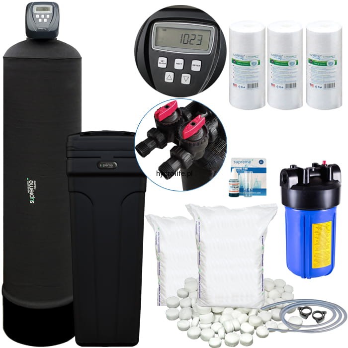 Zawiera 40 litrów doskonałej jakości złoża zmiekczającego w zbiorniku Black SUPREME INDUSTRIAL.