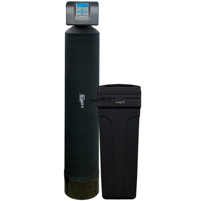 Doskonałej jakości zmiękczacz z 50 litrami złoża monosferycznego LEWATIT w zbiorniku Black SUPREME INDUSTRIAL z systemem DFLR.