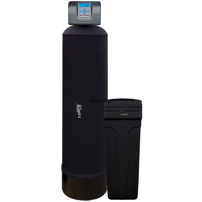 Doskonałej jakości zmiękczacz z 75 litrami złoża monosferycznego LEWATIT w zbiorniku Black SUPREME INDUSTRIAL z systemem DFLR.