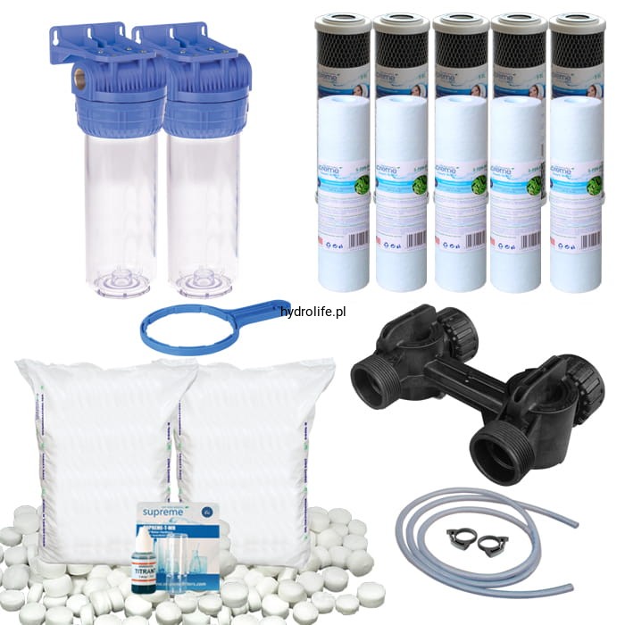 *w przypadku instalacji systemu na wodzie z ujęcia własnego, konieczna jest konsultacja ze sprzedawcą oraz dobór filtracji poprzedzającej zmiękczacz. Konieczne będzie dołączenie pełnej analizy fizyko-chemicznej.